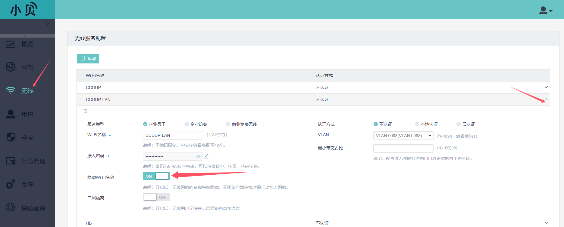 这个ac怎么设置ssid隐藏功能;web页面没看到这个功能