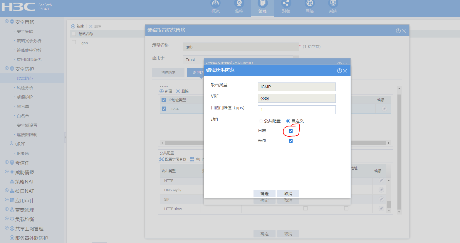 secpath F5040 在web页面看不到攻击防范日志,实际攻击防范已生效,是有什么日志开关?