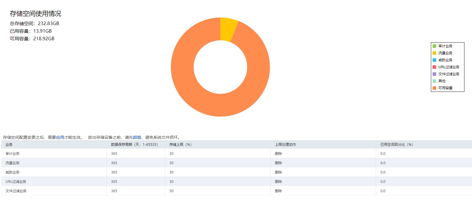 DACData Analysis Center,数据分析中心)提供了业务日志信息的数据挖掘和可视化展示服务。它支持日志信息存储与分析、流量监控和报表分析功能,可帮助用户清晰地了解业务流量分布情况以及网络安全现状,为用户制定各业务策略提供了有力的数据支持。缺省情况下数据空间上限为20%,也就是当用户网络数据超过了储存空间的20%后就会默认执行删除文件以保证存储空间够用,同时会产生日志。