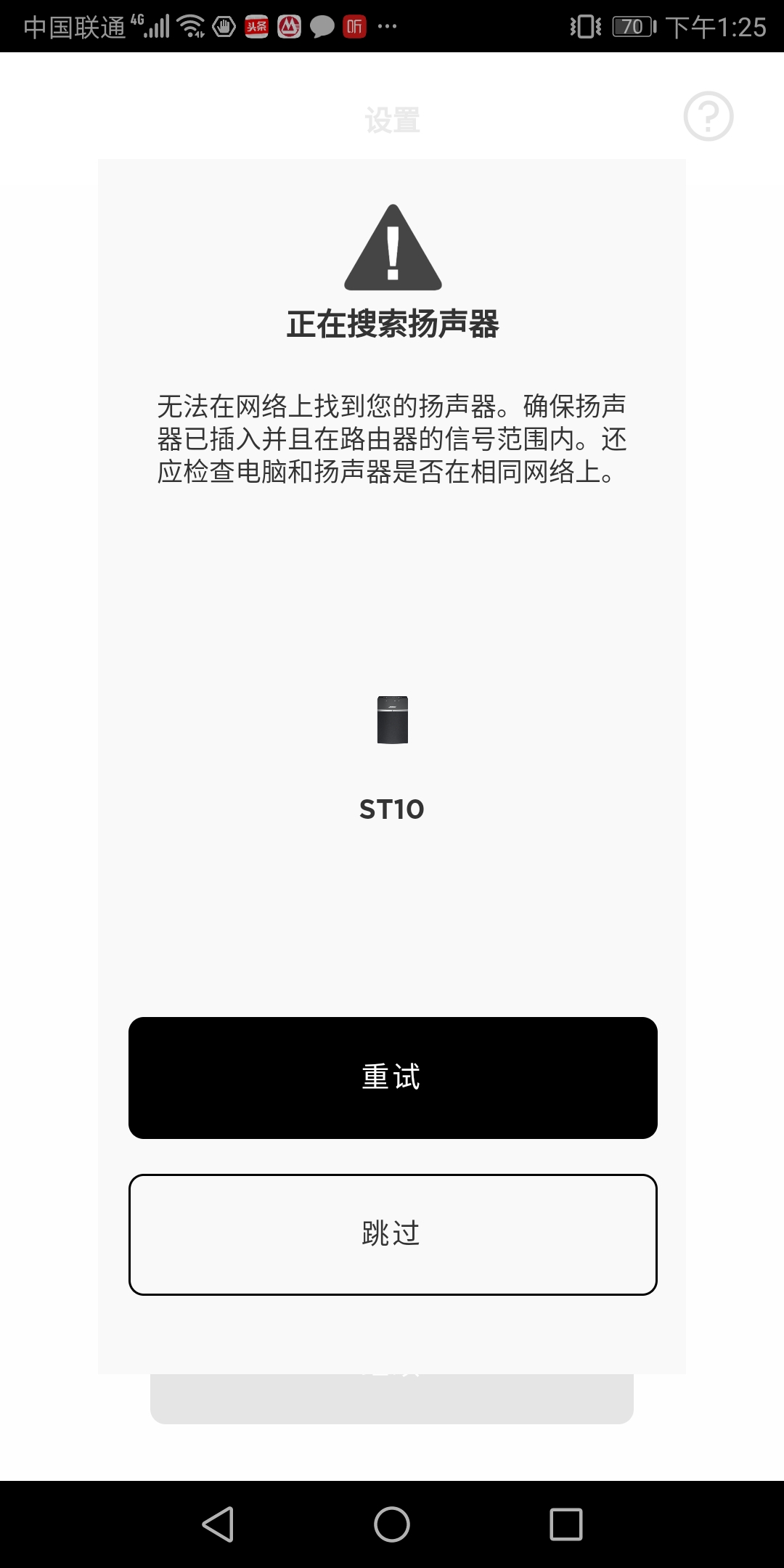 但当手机或者其它任何网络A内的终端搜索这台bose设备都无法找到,这样也就无法在bose app内发现该设备如截图。