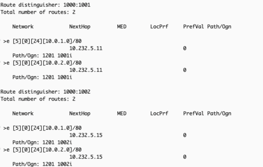 ip route-static 10.0.2.0 24 vpn-instance vpc-1000 10.0.2.1