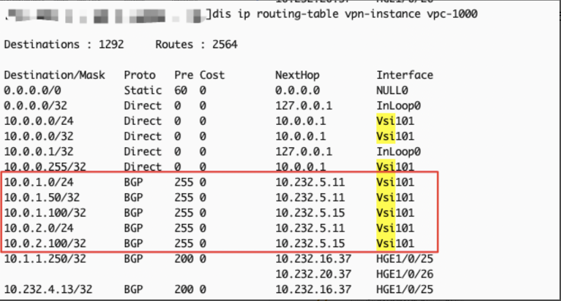 由于配置ip route-static 10.0.1.0 24 vpn-instance vpc-1000 10.0.1.1