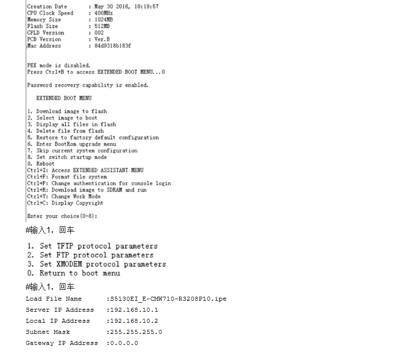 Ctrl-B to enter Extended Boot menu...3时,迅速按Ctrl+B(也可以开机启动的时候一直按着ctrl+B),进入bootware菜单后,提示输入密码。密码默认为空,直接回车即可,然后显示如下界面: