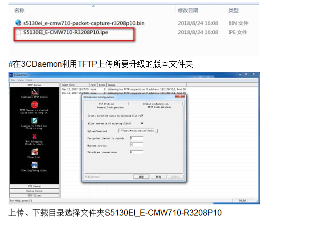 #在3CDaemon利用TFTP上传所要升级的版本文件夹