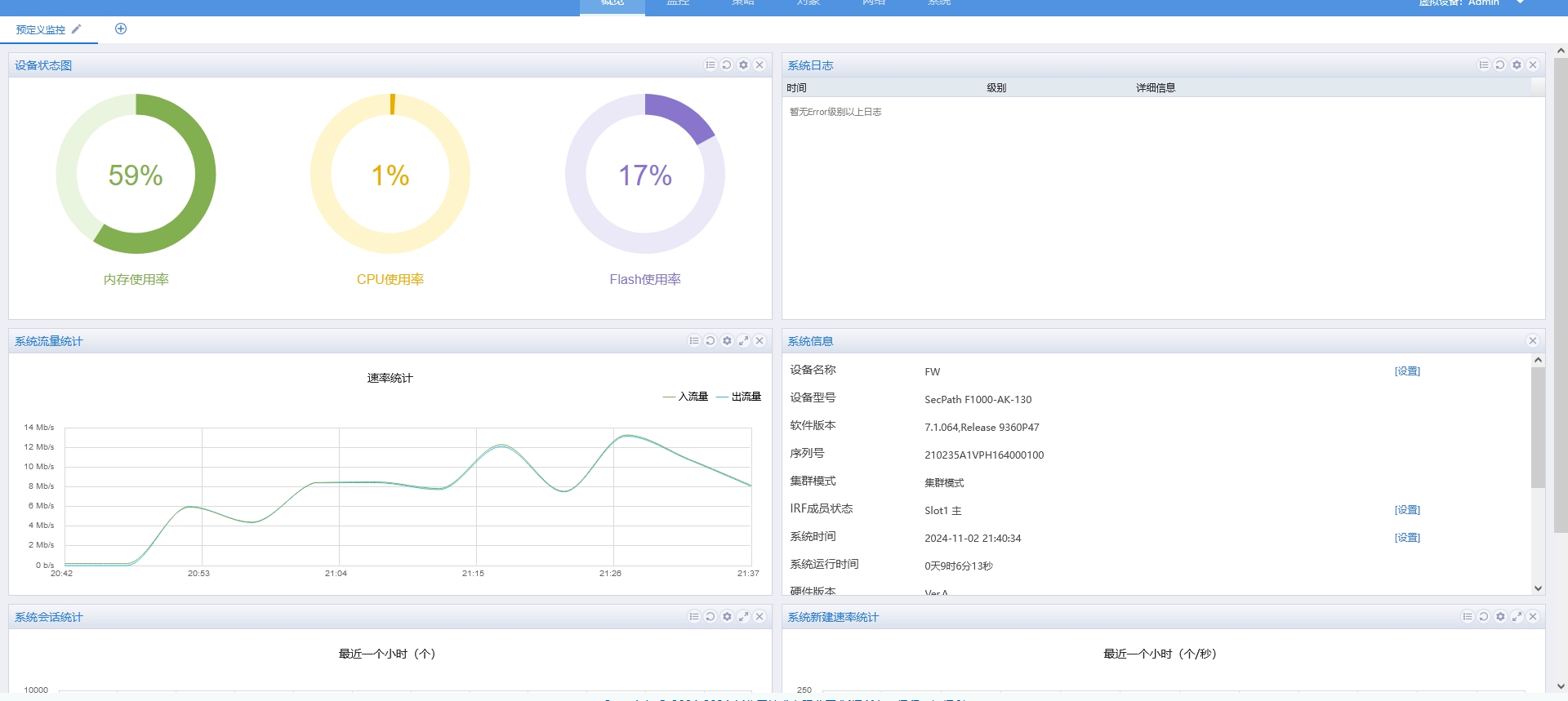 F1000-AK130防火墙透明模式没流量,没命中,没会话,就是网是通的感觉什么都没防护,求助。哪里配置不对吗?