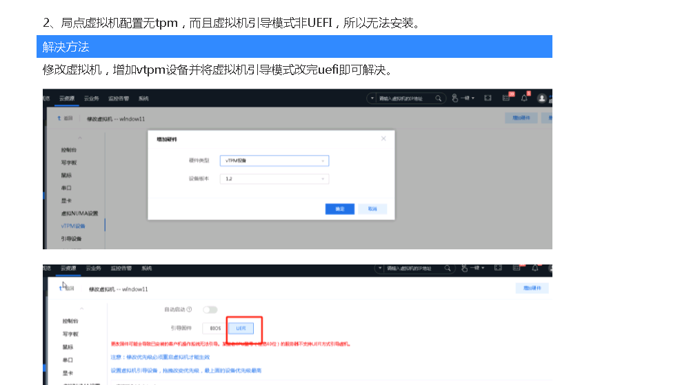 超融合 V7.0 (E0750P11) ,创建虚机后 安装win11 提示不满足安装条件,怎么处理?