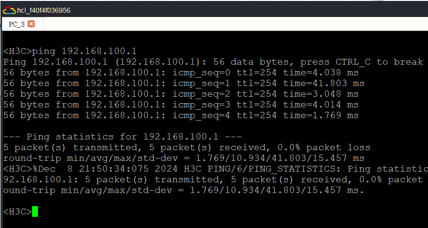 下面的PC_3仍然可以ping通上面的路由IP地址192.168.100.1