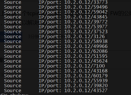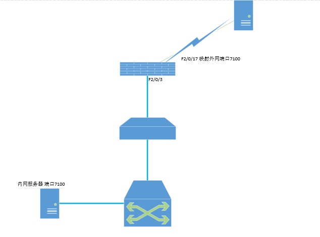 问题出现在:外网访问7100端口是通的,服务器之间的心跳也是没问题的,但是外网服务器采集不到内网的数据(外网服务器发起检索),经过抓包发现,出口防火墙F2/0/17(防火墙外网出口),能收到外网服务器的检索请求包,但是到了F2/0/3(防火墙内网接口)抓包发现,抓不到外网服务器的检索请求信息,(只有两台服务器的心跳)。首先说一下nat问题,内网有几十台服务器,外网映射的端口可能有20个左右,均正常工作。