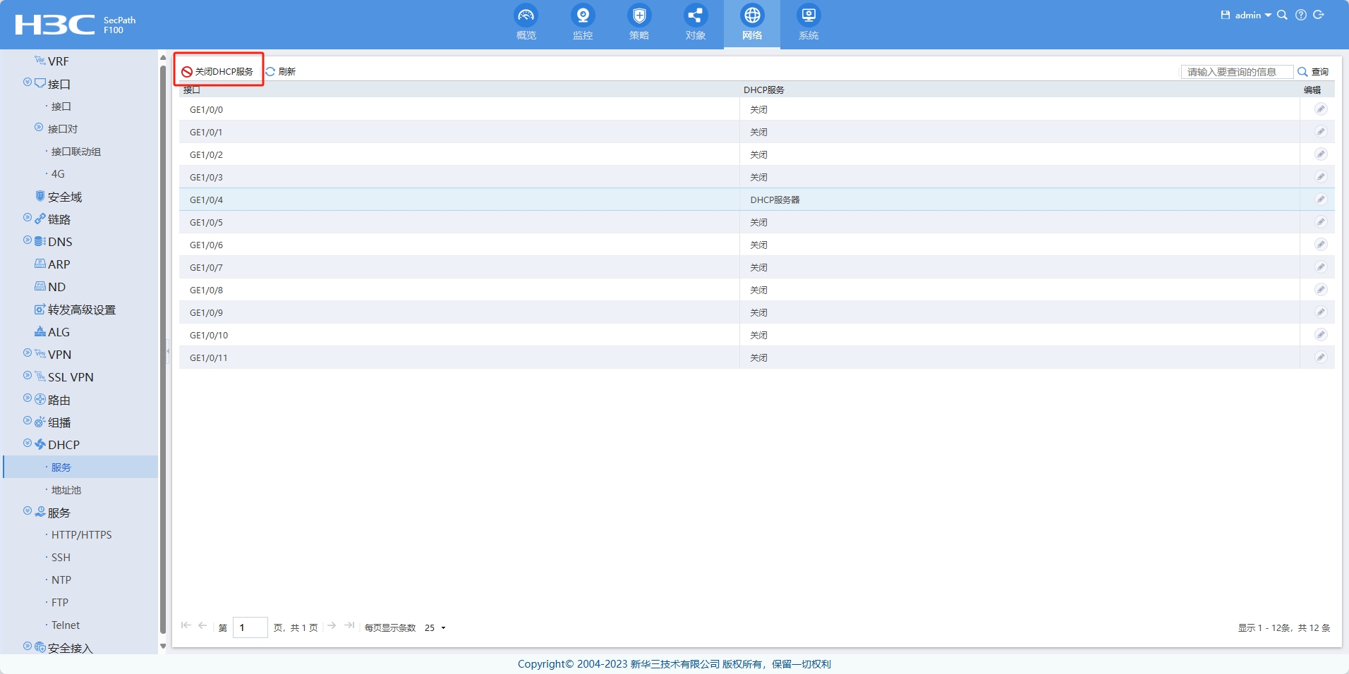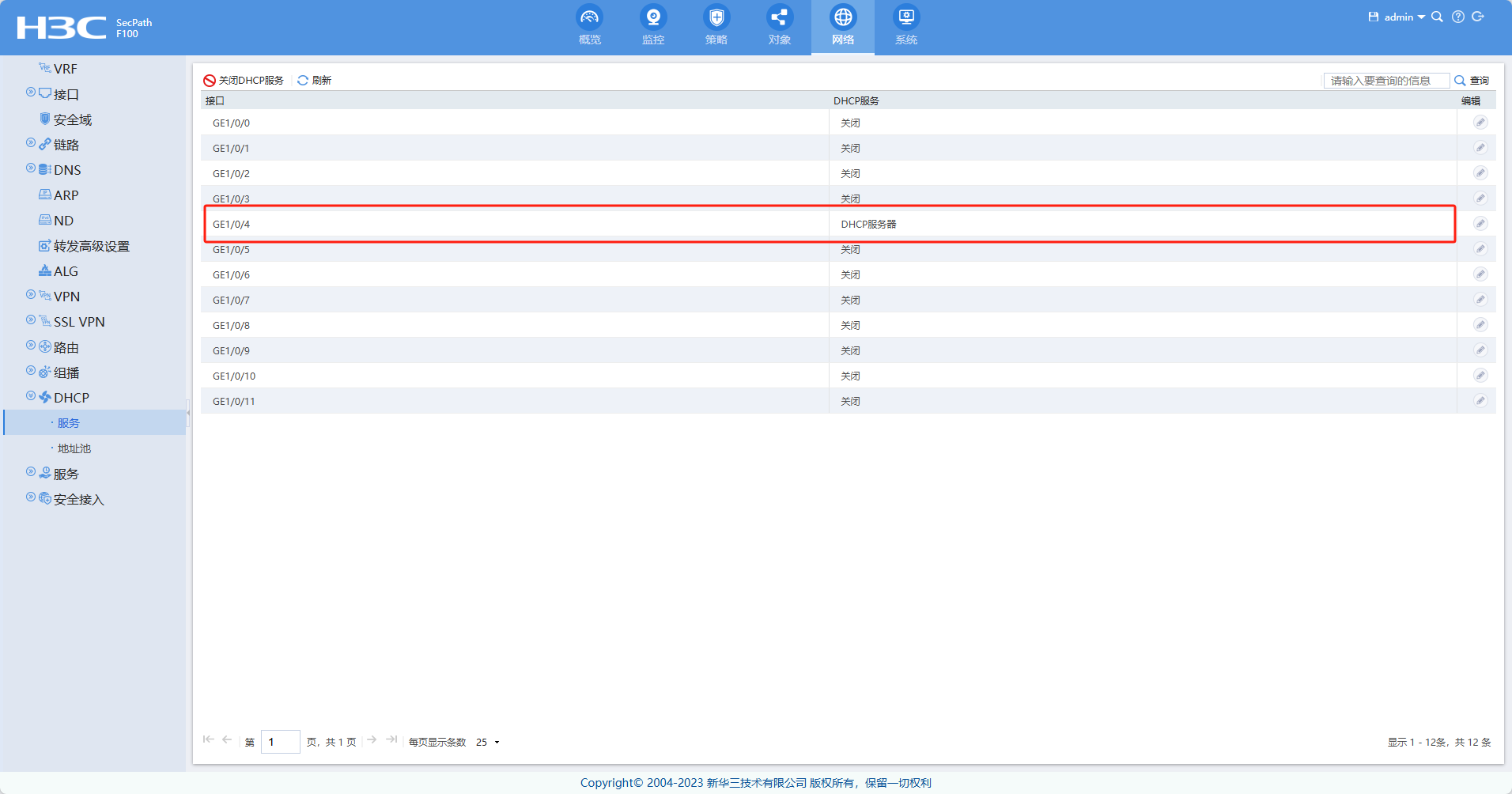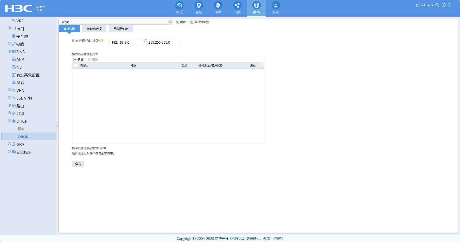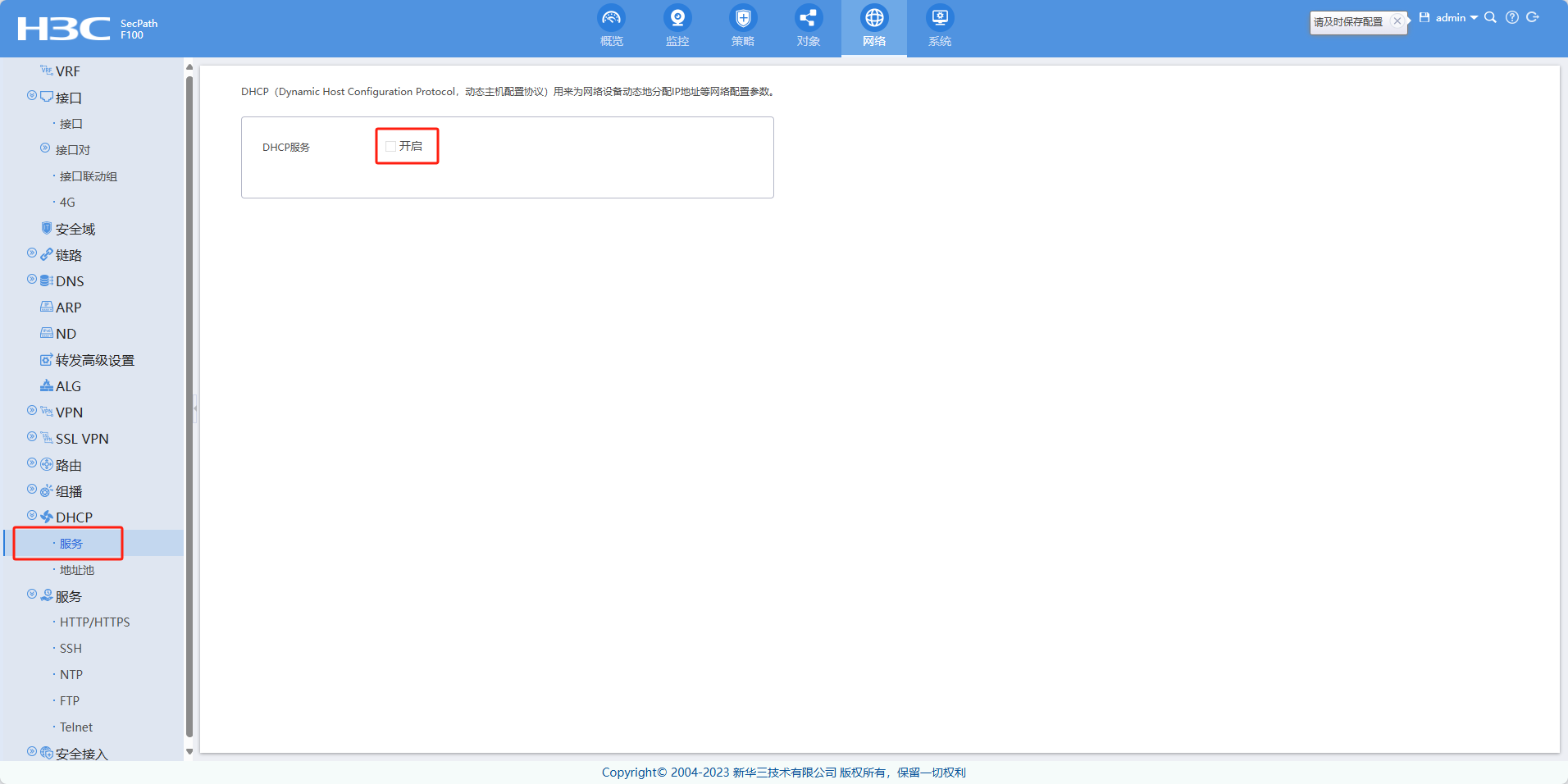 F100-C如何配置DHCP,配置了不生效