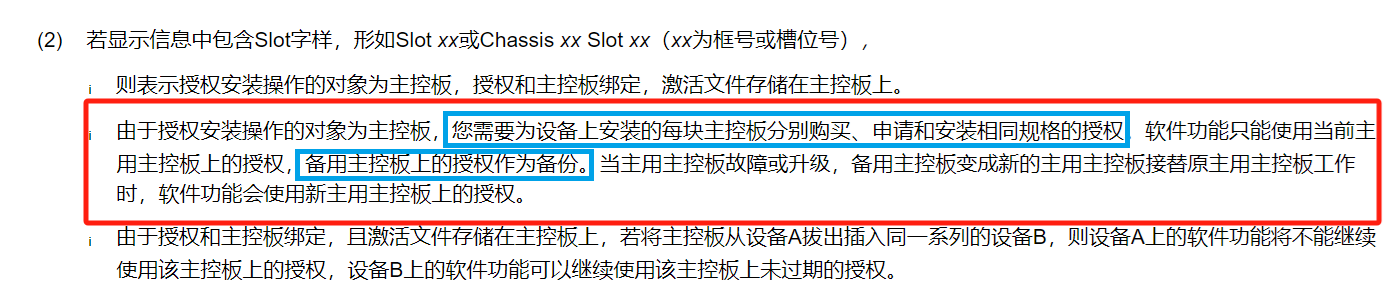 谁能通俗的解释一下这句话,授权和主用主控板的SN绑定了,为什么主用主控板故障了,备用主控板上的备份授权还能发挥作用接替工作吗,按我的理解如果备用主控板没有单独买授权,那它接替之后授权的功能应该就不能使用了才对呀,求解