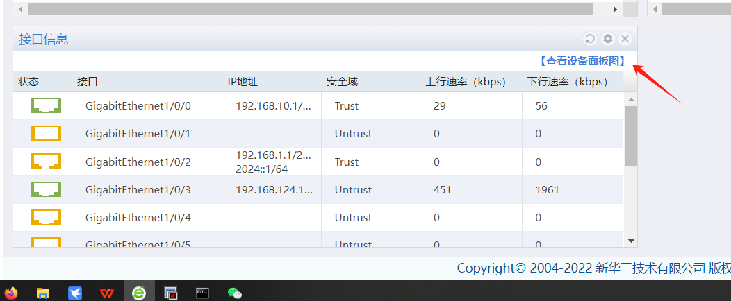 刚更换了F1000-AK1242防火墙,原来旧H3C的防火墙可以查到端口状态图,如下图: