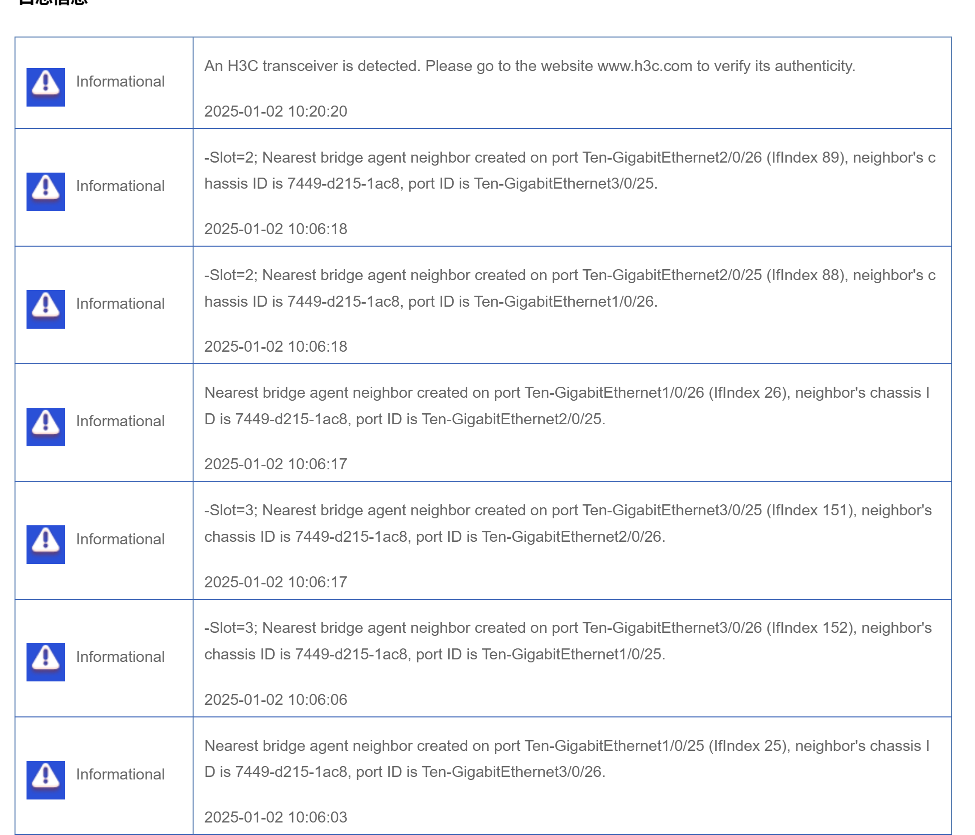 有一根堆叠线是非h3c 品牌的,其它是h3c的