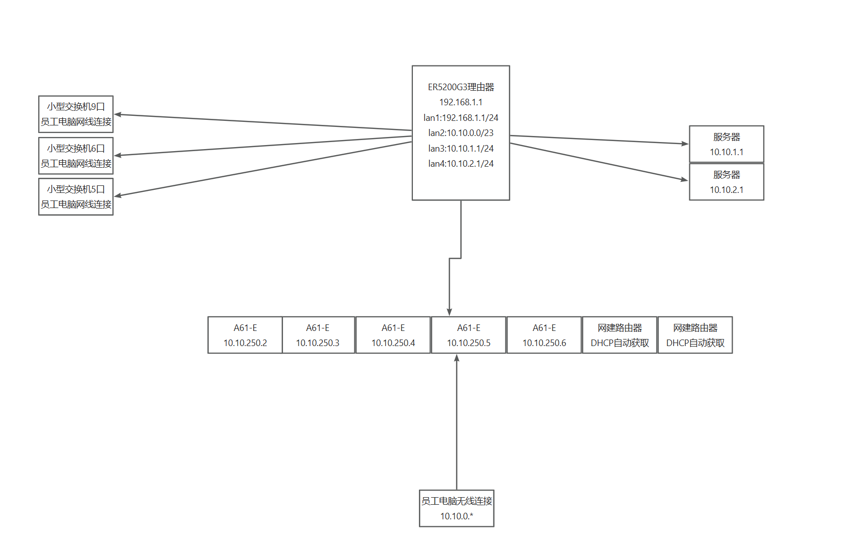 组网每到周五公司网络,就会连接失败,pc有不超过200个连接,手机有80个连接,其他打印机等终端30个然后有的电脑会分配到192.168.1网段,但是我们大厅的实际网段是10.10.0网段,大厅的ap一共有5个而且我们的大厅员工连接的是ap还有网建路由器,就是平常会连接不上,也偶尔ping网关连接不通,还有办公桌上有小型交换机电脑连接,有知道原因吗,不知道是网建路由器的干扰导致AP不行,还是连接过载,谢谢