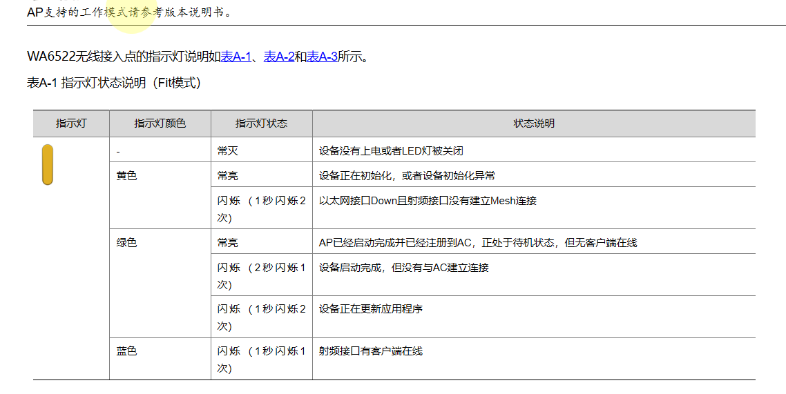 WA4320-ACN-B的指示灯说明如下表所示。