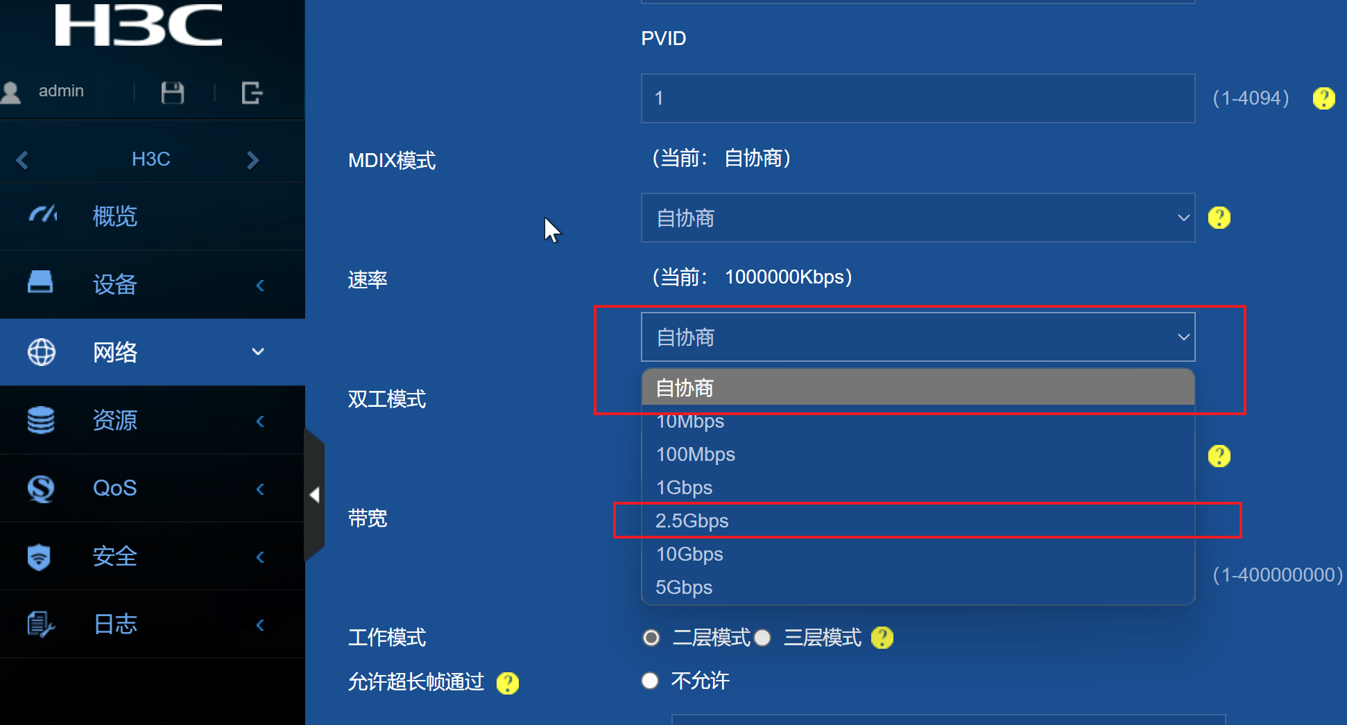 但是自动速率无法识别为 2.5G,仅识别为 1G: