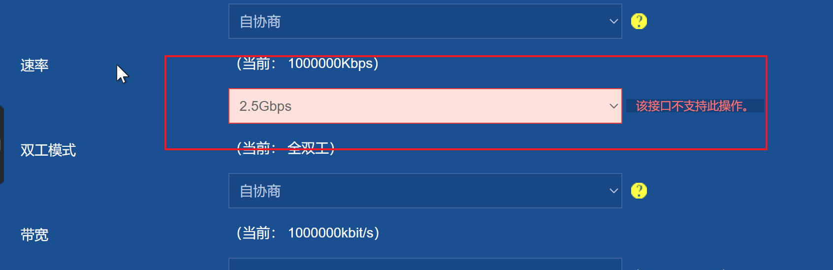 S6800-54QT 的万兆口的向下兼容是否包含了 2.5G 口,如当前管理面板系统下图,我发现它的选项菜单是有 2.5G 的:
