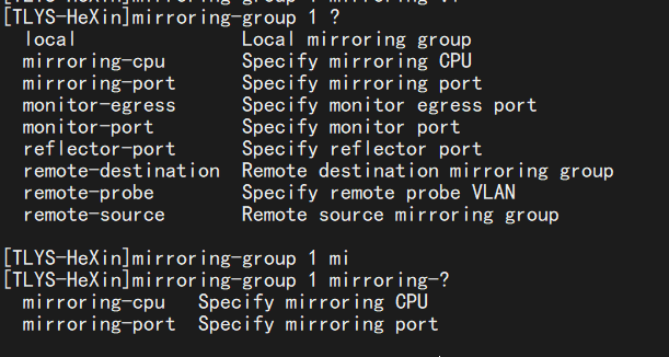 输入“镜像组编号”、选择“类型”、“源端口”、“方向”、“远程镜像VLAN”后点击确定即可完成配置。