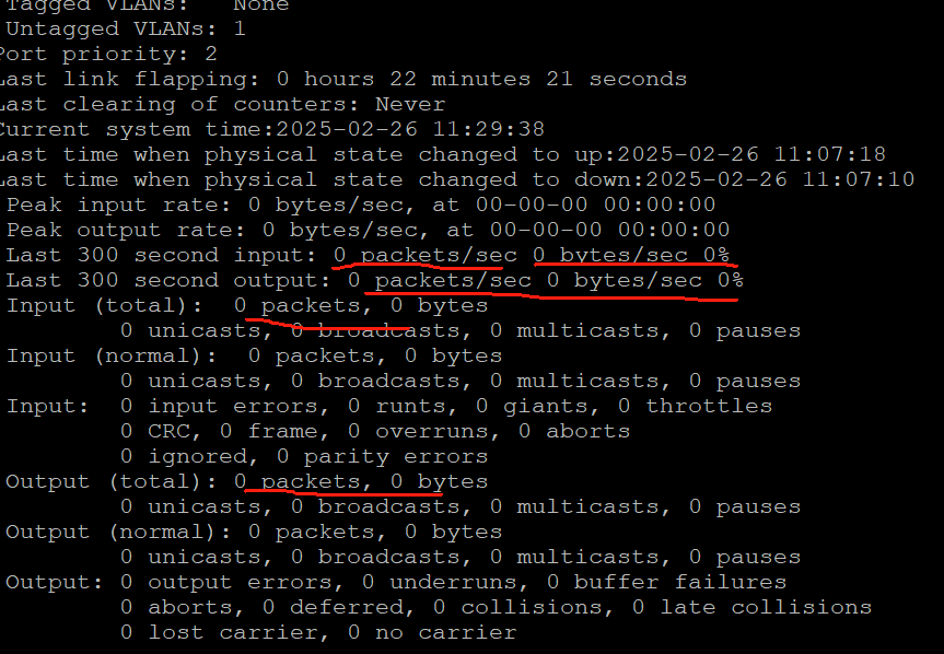 我用8000byte的ping命令一直ping交换机,为啥在dis interface命令里边,output 和input里边都是0字节啊?ping命令产生的数据包,不被统计吗?