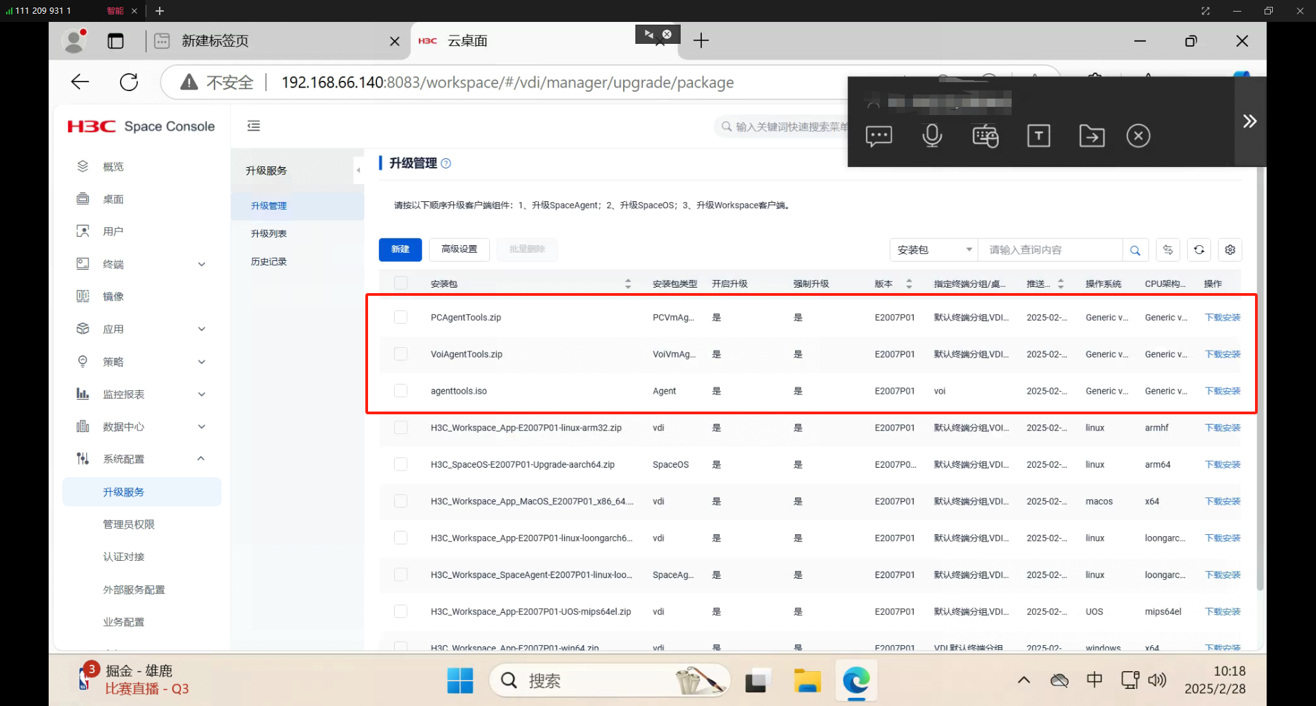 解压后有个H3C_Workspace-E2007P01-AgentTools.zip,点开始上传,半天都没反应