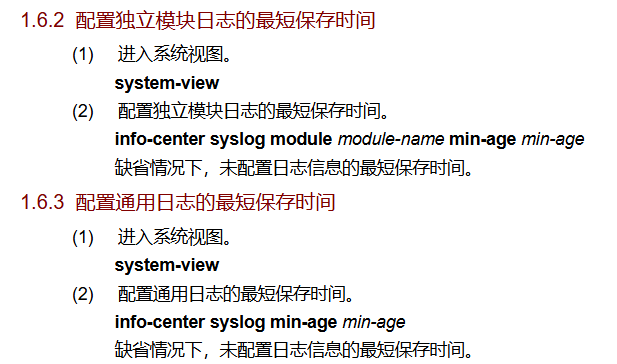 将系统日志输出到日志缓冲区 | 配置此功能后,设备会将业务模块生成的日志保存到日志缓冲区。其中,设备会为一些业务模块(例如会话、攻击防御等)创建单独的日志缓冲区,用来分别存储这些业务模块的日志,其它业务模块的日志会统一存储到通用日志缓冲区中 |