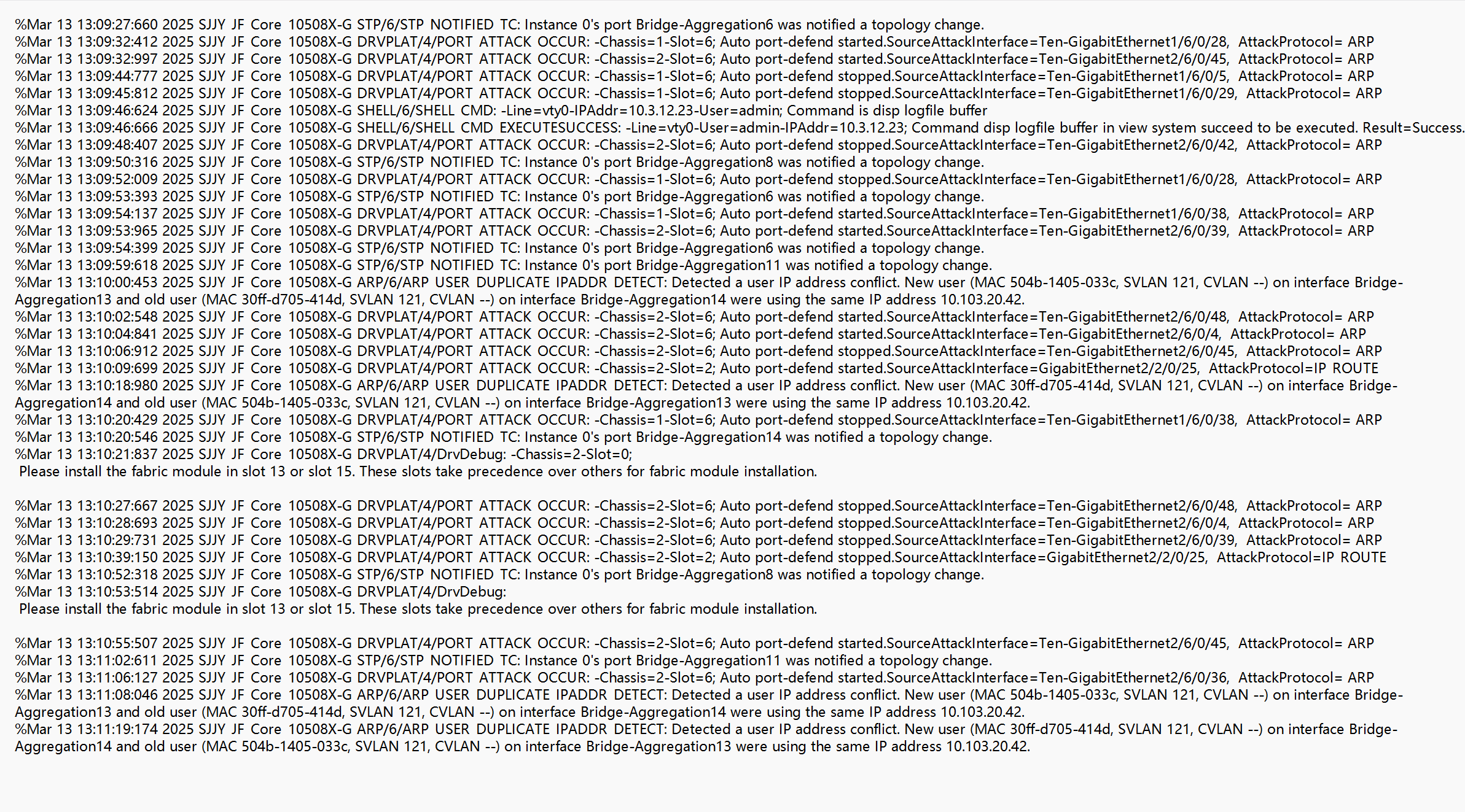 这可能是由于网络中存在恶意攻击者发送大量假的ARP报文。 解决方法: 1. 升级设备固件到R2820及之后版本,注意单板适配。 2. 部署ARP防攻击策略,具体部署方法可参考新华三文档:https://www.h3c.com/cn//D_202502/2354295_30005_0.htm 对终端的影响:部署ARP防攻击策略通常不会对正常终端造成影响,但可能会对恶意攻击者发送的假ARP报文进行过滤和拦截。在部署策略前,建议先进行评估和测试,确保不会影响正常终端的网络通信。