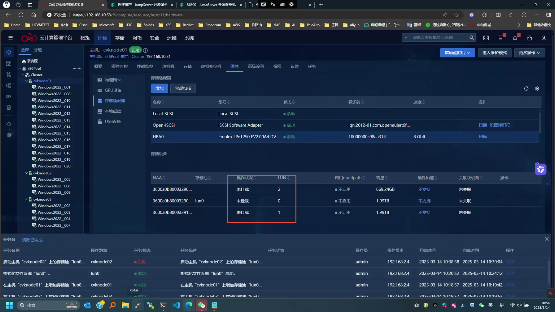 问下关于存储的问题,cas想使用FC共享存储文件系统,HBA卡必须需要二张配置多路径吗?一张HBA卡 多路径不启用,启动存储池没办法挂载lun了