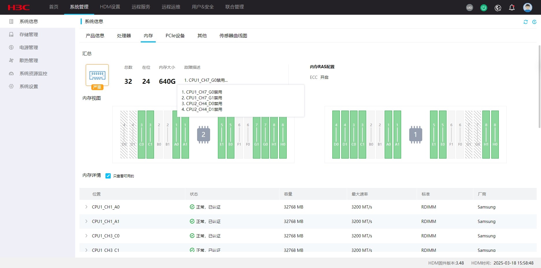 经过查询产品手册,设备最多支持24根内存条,所以把目前的16根扩容为24根