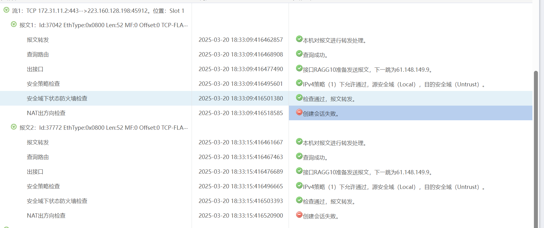 负载均衡做完DNAT一会从公网一直访问不了抓包看NAT出口方向提示创建会话失败