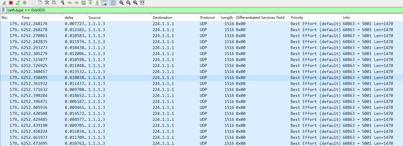 使用华三HCL模拟器修改重标记报文802.1p和dscp值没有生效,在XGE_0/1处抓的包,配置如下。请问是我配置错了吗?还是HCL不支持修改