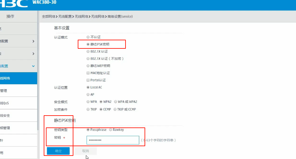 进入无线控制器网页点击无线网络 编辑 链路层认证 修改静态PSK密钥 确定后 无线控制器无法使用新密码 可以告知一下如何修改无线控制器密码方式,修改无线控制器密码后 AP密码也会修改吧