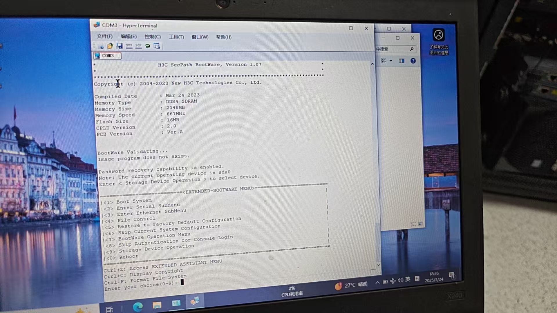 开机后,SYS闪几下就灭了,用console线连接电脑,如图所示。