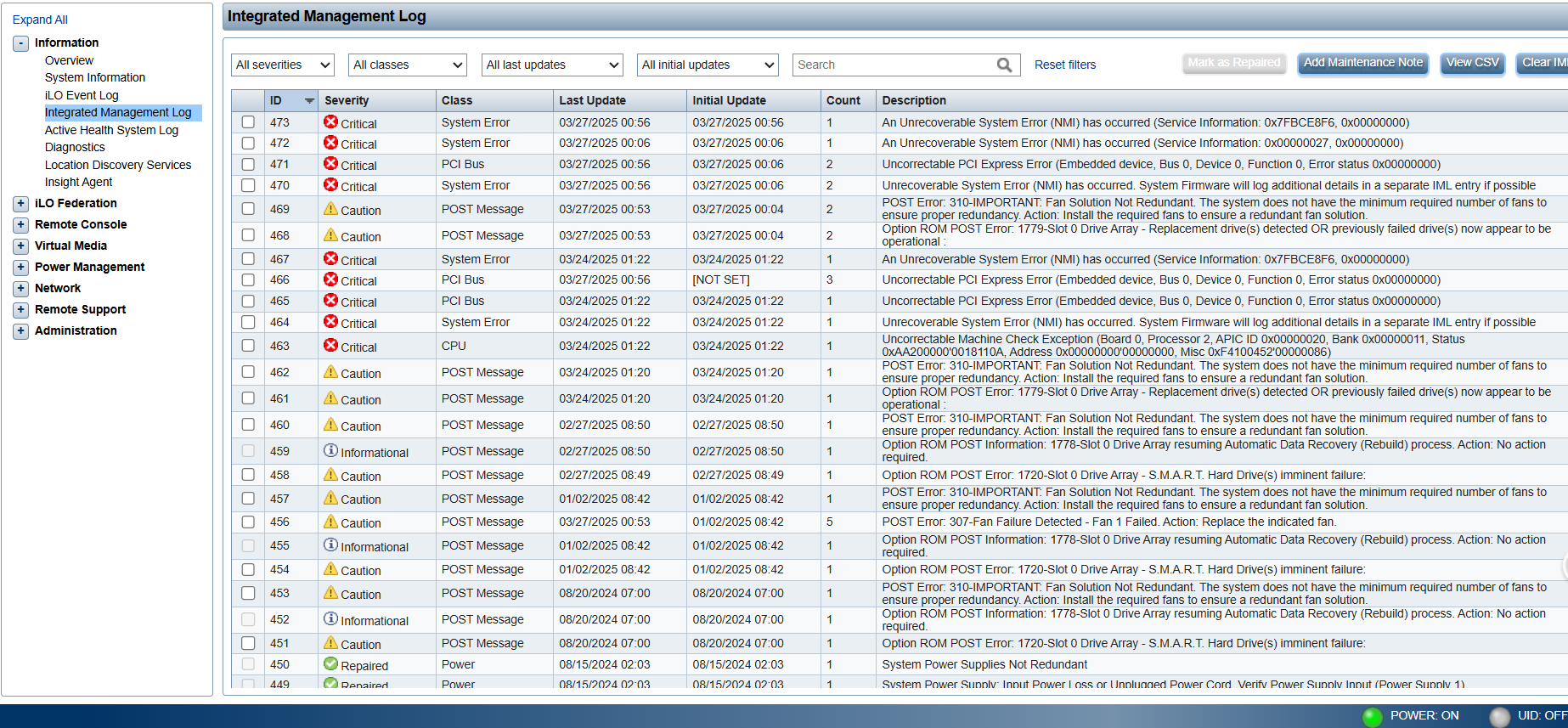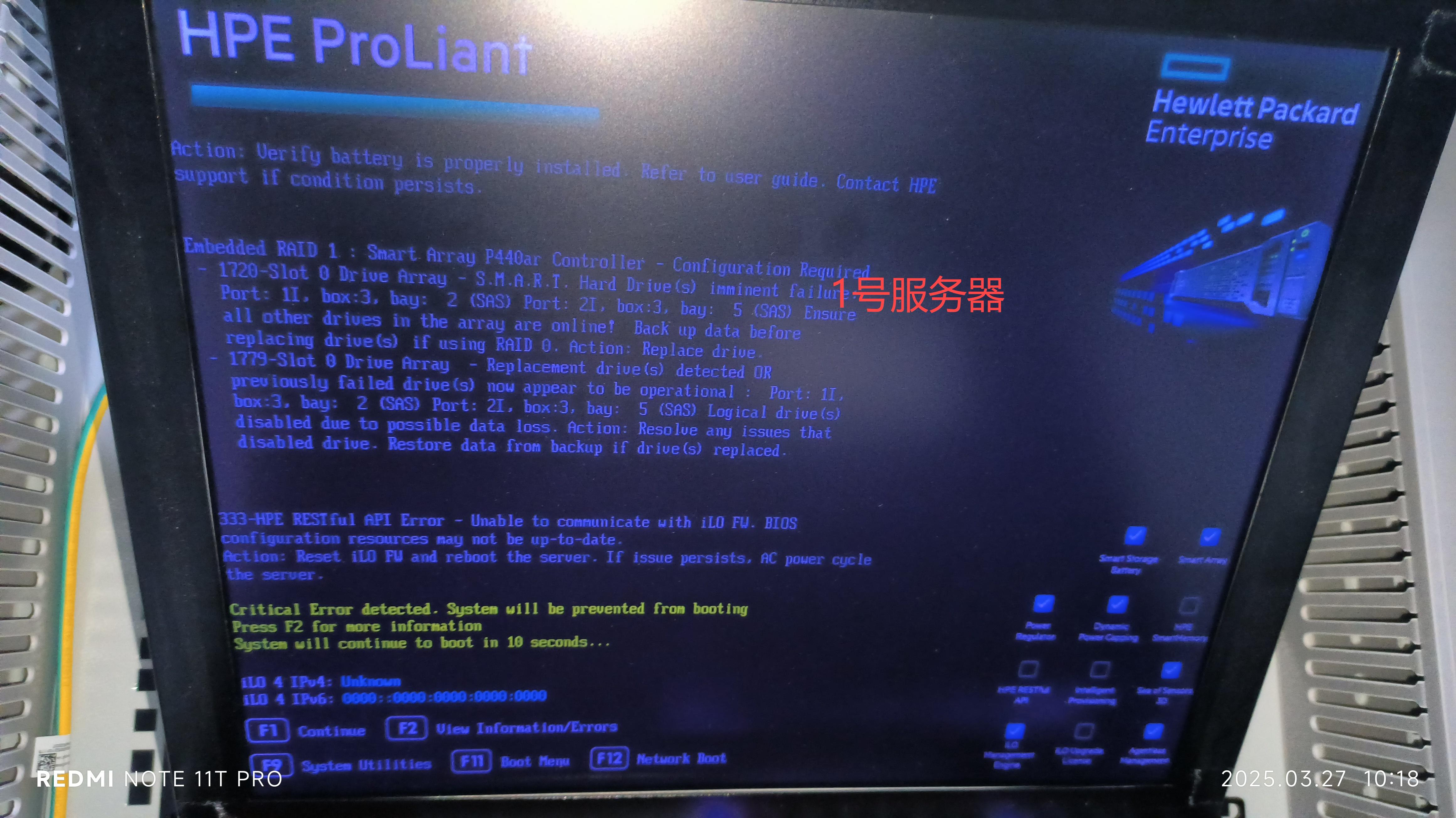 有没有了解故障原因的大佬,第二台服务器我用web进去了,里面提示逻辑驱动器有问题。