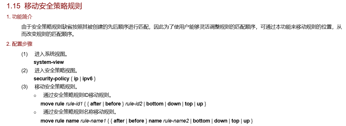 我新创建了一条安全策略,我希望可以在匹配安全策略的时候,先匹配这条在匹配之前配置的策略,通过什么命令可以实现,求大神解答