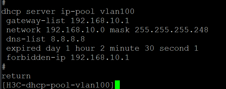 3. 通过 gateway-list 指定客户端网段,地址池会自动关联到对应网段的接口,无需在三层接口下逐一配置DHCP服务器地址。