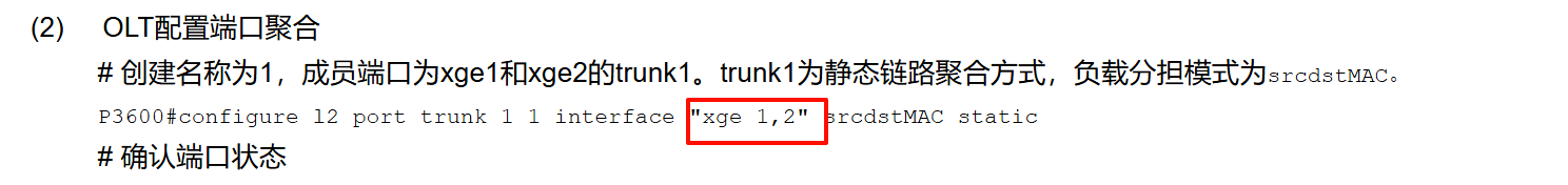 XGE 1 和 XGE 5 做静态聚合 这么写 (我这样写报错 port trunk 1 1 interface "xge 1.5" srcdstMAC static 在那个红色那个地方报错)