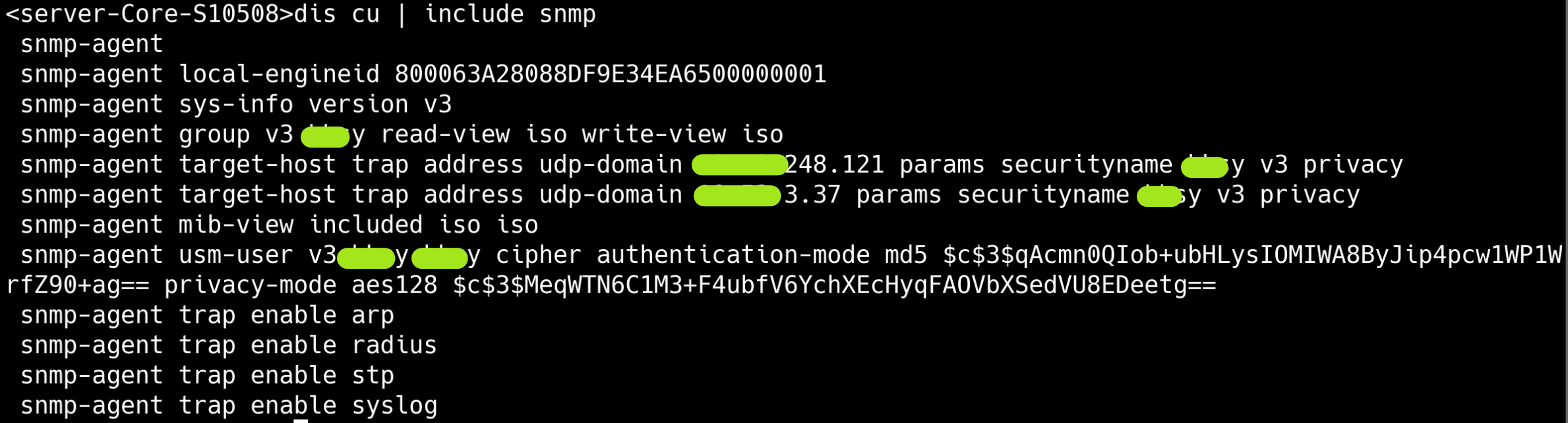 以下是设备snmp配置信息