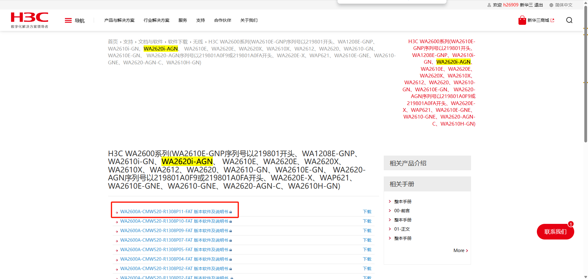 胖版本:http://h3c.com/cn/Service/Document_Software/Software_Download/IP_Wlan/AP/WA2610E-GNP_WA1208E-GNP_WA2610i-GN_WA2620i-AGN_WA2/?CHID=114835&v=612