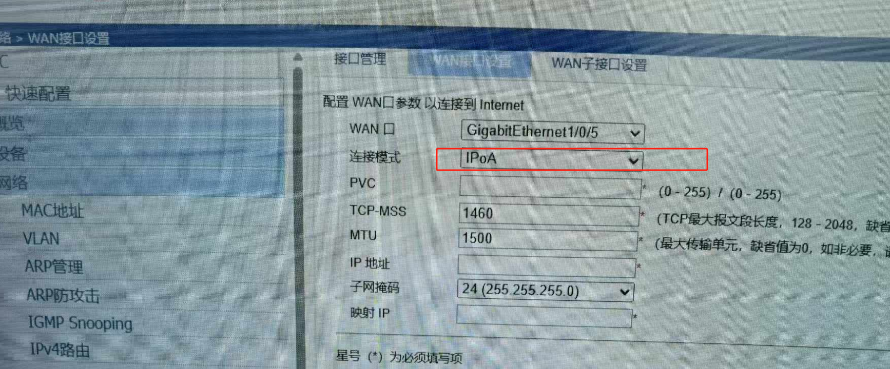 固定地址 这个连接模式里只有 IPoA IPoEoa PPPoA PPPoEoA