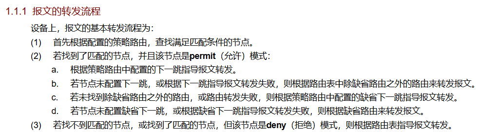 如华为:有缺省情况下,设备按照路由表的下一跳进行报文转发,如果配置了策略路由,则设备按照策略路由指定的下一跳进行转发。在通过low-precedence指定后策略路由后,对于匹配所定义策略的报文,优先选择路由表中明细路由中的下一跳/出接口转发;当路由表中明细路由失效后,才使用策略路由中配置的下一跳/出接口转发报文。只有当明细路由和策略路由下一跳都失效后,如果路由表中还有缺省路由,则报文将匹配缺省路由继续转发。