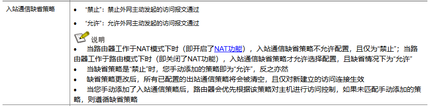 为什么默认是允许所有,要配置了才会拒绝呢?但是在界面上看到的却是允许。实测就是默认放通全部,配置了才会拒绝已配置的网段.入站通信缺省策略只有禁止,没有其他可选