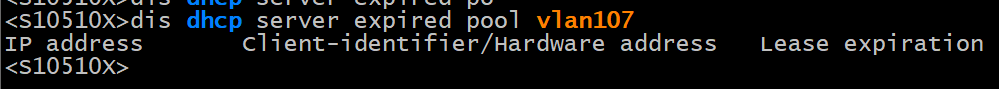 地址池为vlan107:192.168.106/23,查看地址池分配情况只分配了几个IP地址,如下: