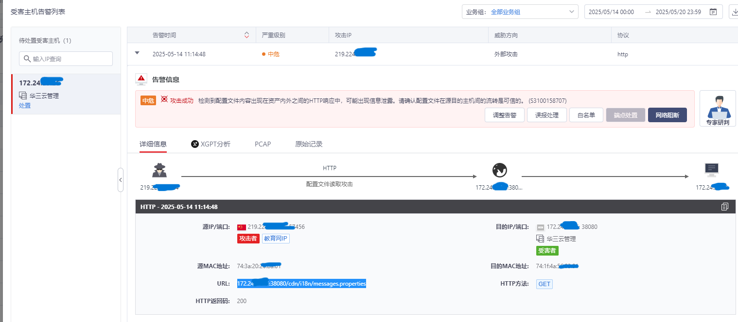 3.0版本云服务管理平台检测到配置文件内容出现在资产内外之间的http响应中,该被攻击url为云平台web管理界面内的配置文件,求教该如何解决该攻击风险或限制该URL访问权限呢?