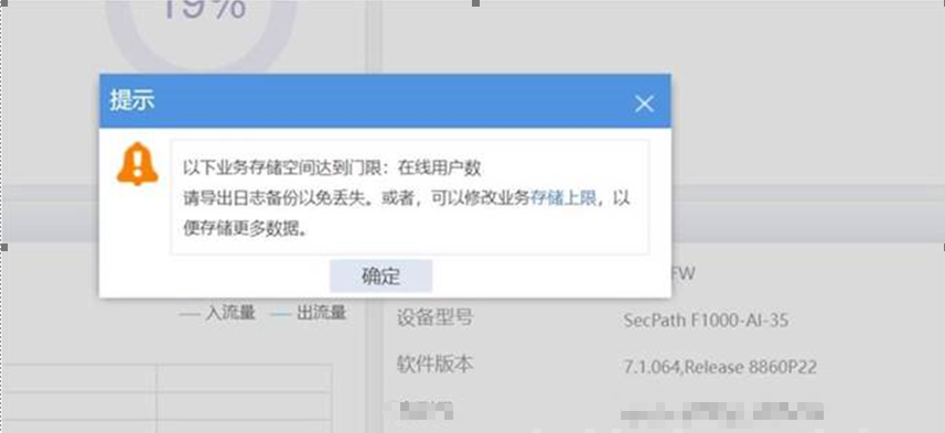 登录防火墙会提示日志存储空间到达门限,如何关闭这个提示让其不再提示。