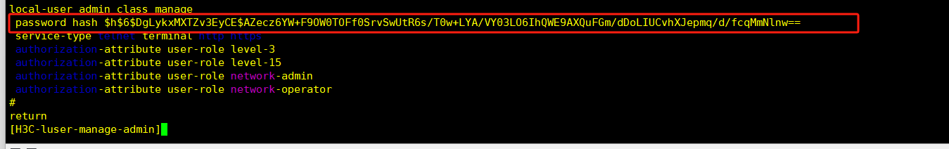 S5130S-28S-HI交换上创建用户,该怎样配置hash密码?
