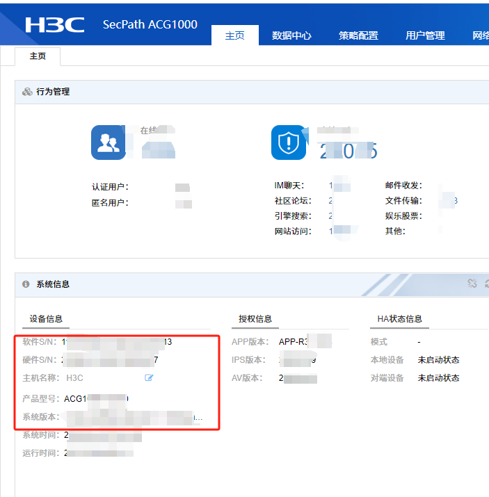 华三行为管理内置操作系统名称及版本号,序列码为219801A1HB9202P00031