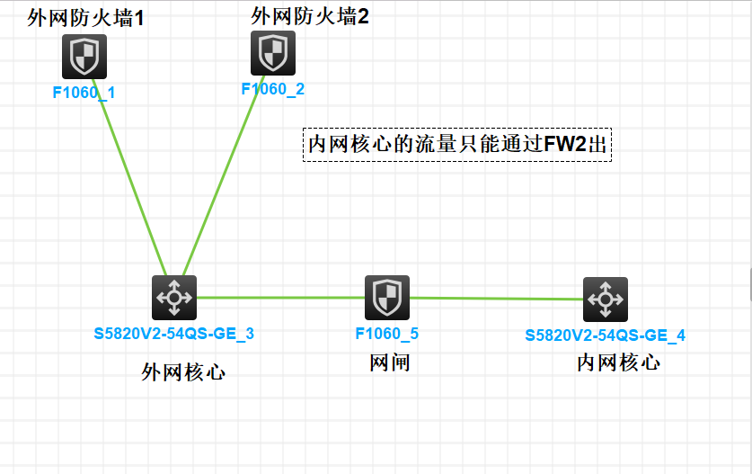 网闸配置呢?如果网闸配置也没问题,那两核心的流量是被策略路由扔防火墙去导致不通?是的话策略路由要先最前面加一个节点,匹配两核心之间的流量,动作不写,这样核心就会查路由表转发