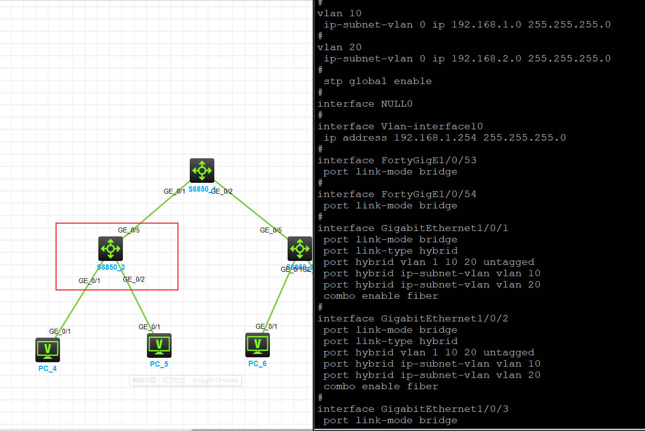 交换机1为网关设备,交换机2的配置如图;交换机2下接的PC4(vlan10/192.168.1.2),PC5(vlan20/192.168.2.2)均无法正常通讯到网关,交换机2和交换机1之间为trunk,放通所以vlan,交换机之间是能够正常通讯,PC无法ping通网关