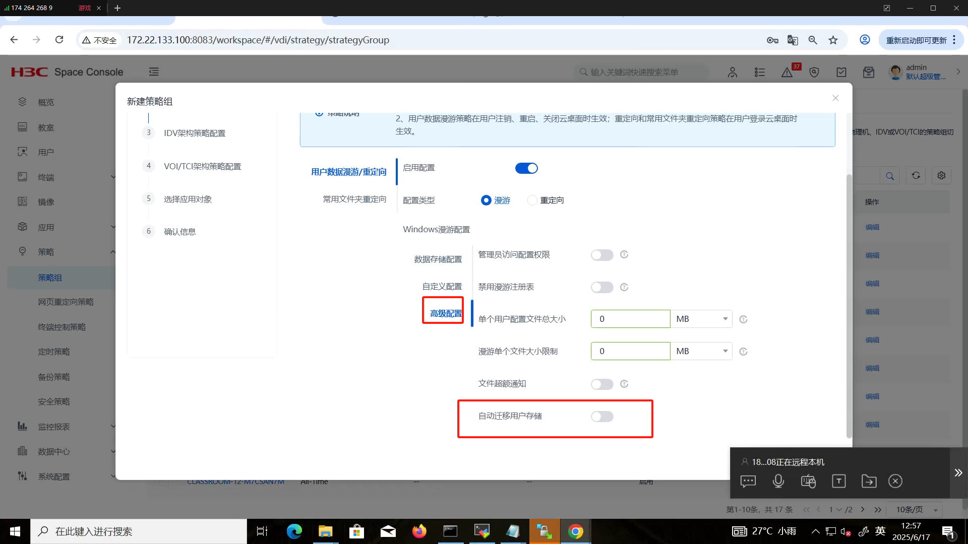 在策略组里开启了用户数据漫游,数据存储配置为本地,配置路径是c盘的桌面,更改镜像之后数据没有漫游,需要如何配置