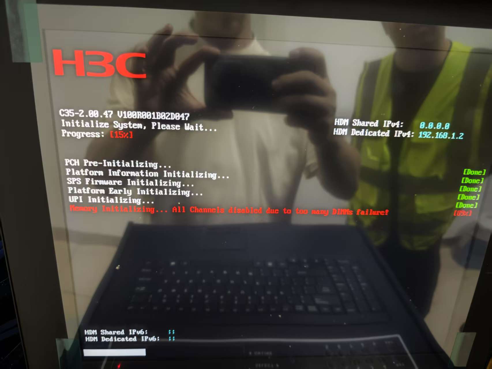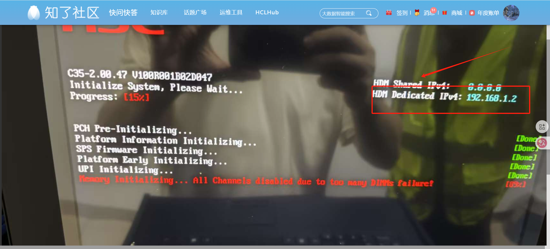 服务器后面有个专用网口HDM。找到这个网口,电脑直连。