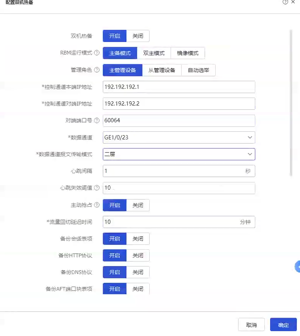 防火墙做RBM+VRRP组网,数据通道报文传输模式选择的是二层,但是VRRP控制接口类型是三层,但是感觉像是环路,下联口一直有一个down,关掉左边墙的下联接口,右边墙下联接口就会up起来